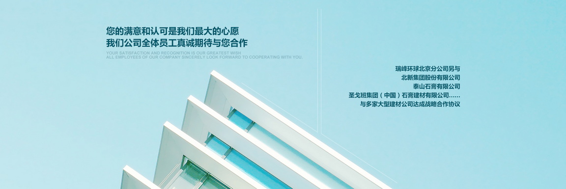 北京市朝陽(yáng)區(qū)金盞鄉(xiāng)科鷹科技園內(nèi),是北京******的建材營(yíng)銷商之一,專業(yè)銷售各種高檔建筑材料的現(xiàn)代化公司.本公司已與多家大型建材廠家達(dá)成合作協(xié)議:泰山石膏建材有限公司,北新建材有限公司,濱州綠邦有限公司,河北金秋有限公司,北京金隅砂漿有限公司,歐文斯科寧(中國(guó))投資有限公司,湯姆節(jié)能建材(北京)有限公司等.更與國(guó)外泰國(guó)工廠生產(chǎn)的:美巖板,清水板,木絲水泥板,木紋木絲板……簽訂了國(guó)內(nèi)經(jīng)營(yíng)權(quán);與德國(guó)高新企業(yè)超薄石材簽屬超薄巖板國(guó)內(nèi)代理權(quán)(超薄巖板,可彎曲石材,厚度1.5~2mm左右)與臺(tái)灣合作研發(fā)礦石板(以最好的效果提現(xiàn)礦石的效果).好的工程絕對(duì)少不了一個(gè)好的建筑材料,瑞峰環(huán)球攜手各大品牌為您的工程保駕護(hù)航.